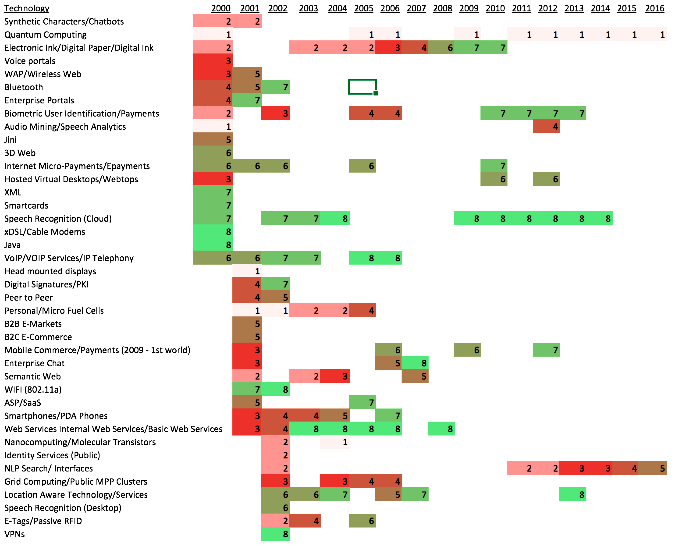 نمایش رشد فناوری در سالهای مختلف